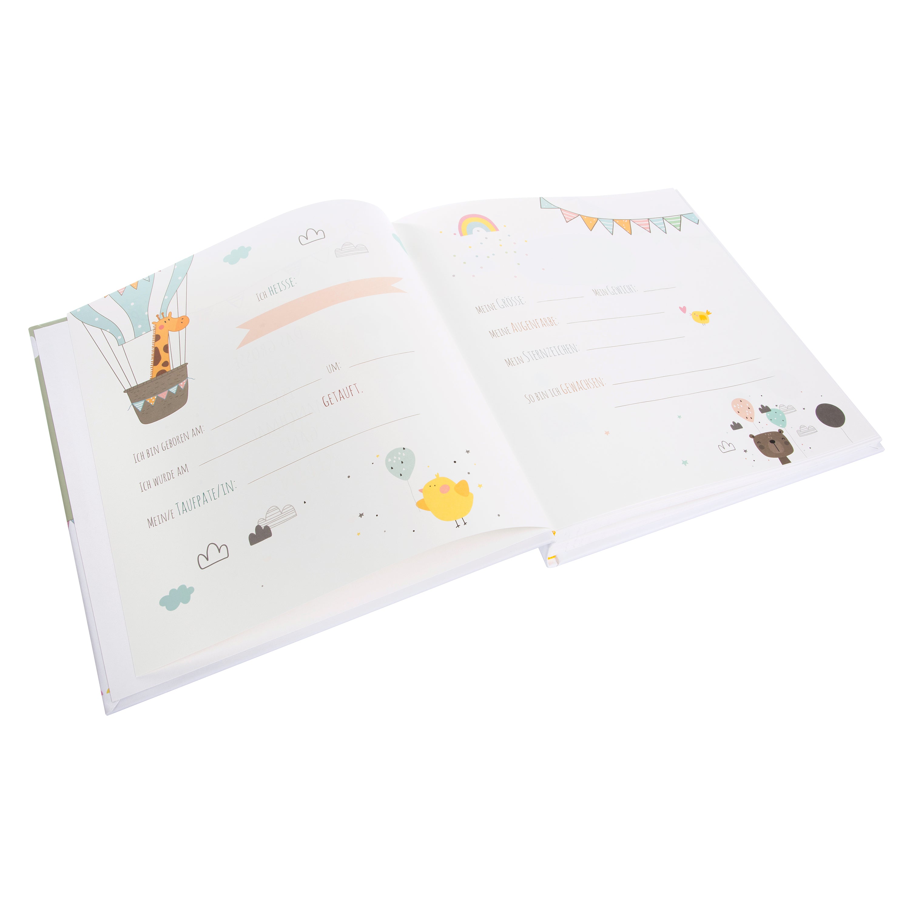 The book-bound album in the classic size 30x31 cm offers 60 white pages to store the most beautiful photos and memories of and with your baby, the exciting holidays and the unforgettable moments. At the beginning there are 4 beautiful illustrated pages on which all the important features of the newborn can be noted. In addition, glassine pages protect the photos from sticking together.