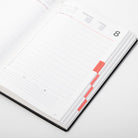 Der Chefkalender Ideal 2025 von TeBe bietet eine detaillierte Planung mit Halbstundeneinteilung von 7:00 bis 20:30 Uhr auf einer Seite pro Tag. Zudem enthält jede Seite im unteren Bereich Platz für Telefonnummern, Adressen und Notizen. Die Beschriftungen sind in Deutsch, Englisch, Französisch und Spanisch gehalten. Zusätzliche Informationen wie die Kalenderwoche und eine Miniaturansicht des aktuellen Monats sorgen für noch mehr Übersichtlichkeit.