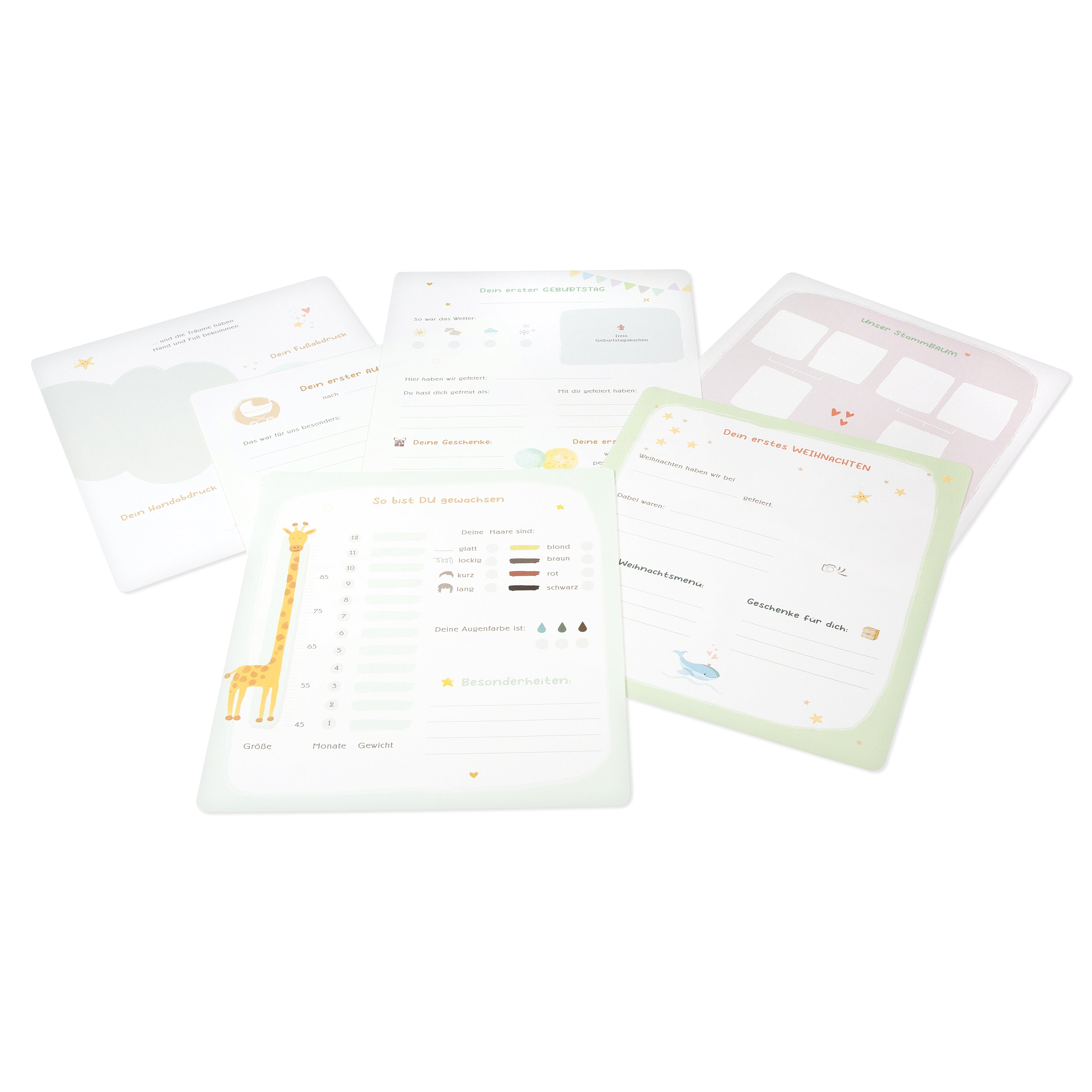 - 6 zusätzliche, lose Designseiten zum individuellen Einkleben