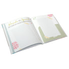 Das Album im Format 23 × 25 cm ist handlich, aber großzügig genug für Fotos im Standardformat und kleine Andenken. Der Einband aus hochwertigem Kunstdruck ist robust und zugleich angenehm in der Haptik – perfekt zum häufigen Durchblättern, auch noch viele Jahre nach der Feier.