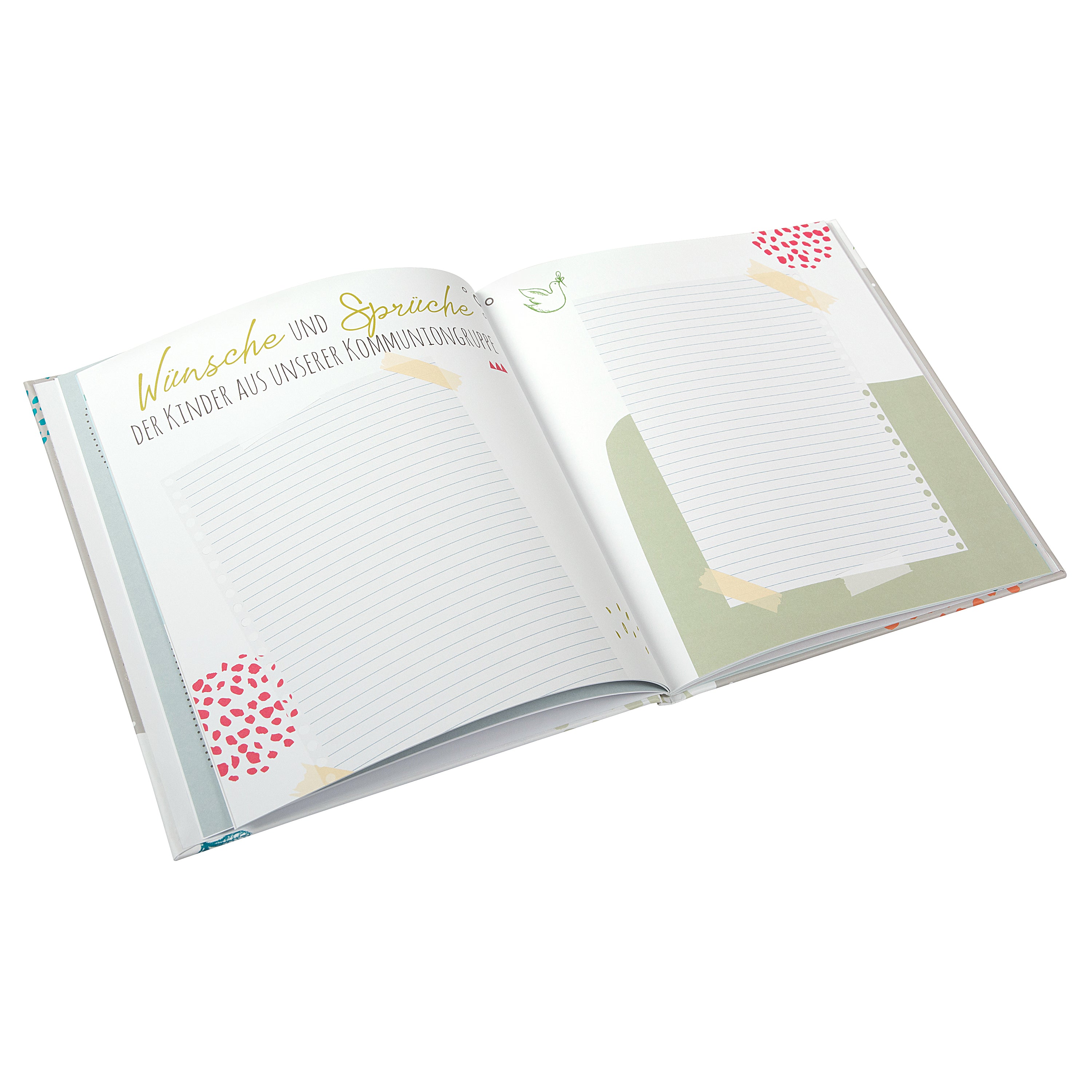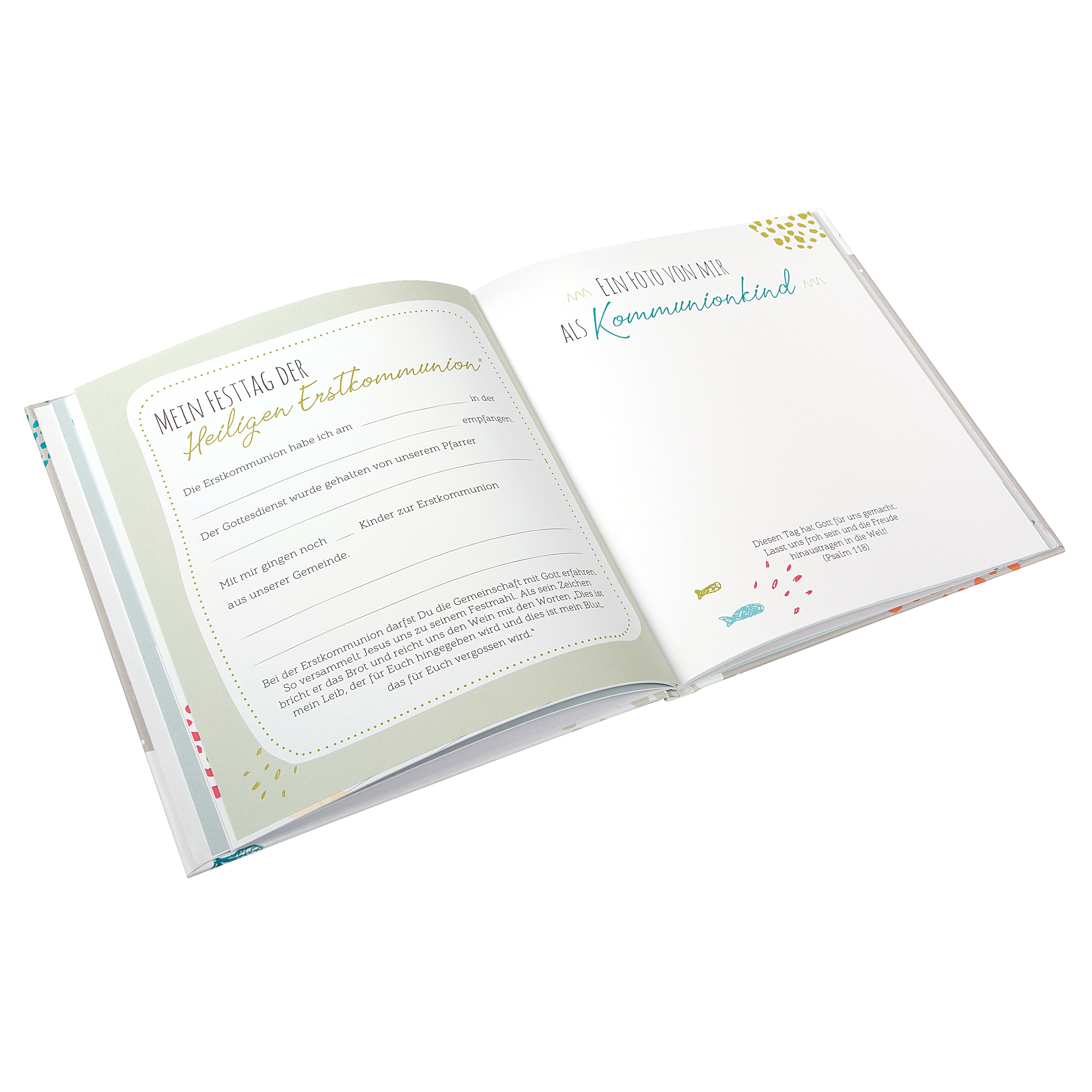 Auf 44 liebevoll illustrierten Seiten bietet das Kommunionsalbum viel Platz für: