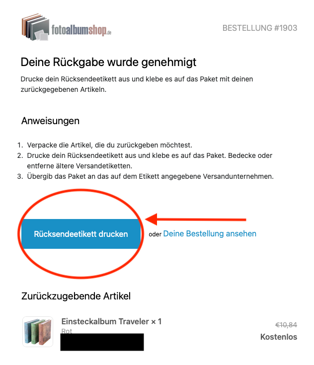 Bestellung verpacken und Rücksendelabel drucken