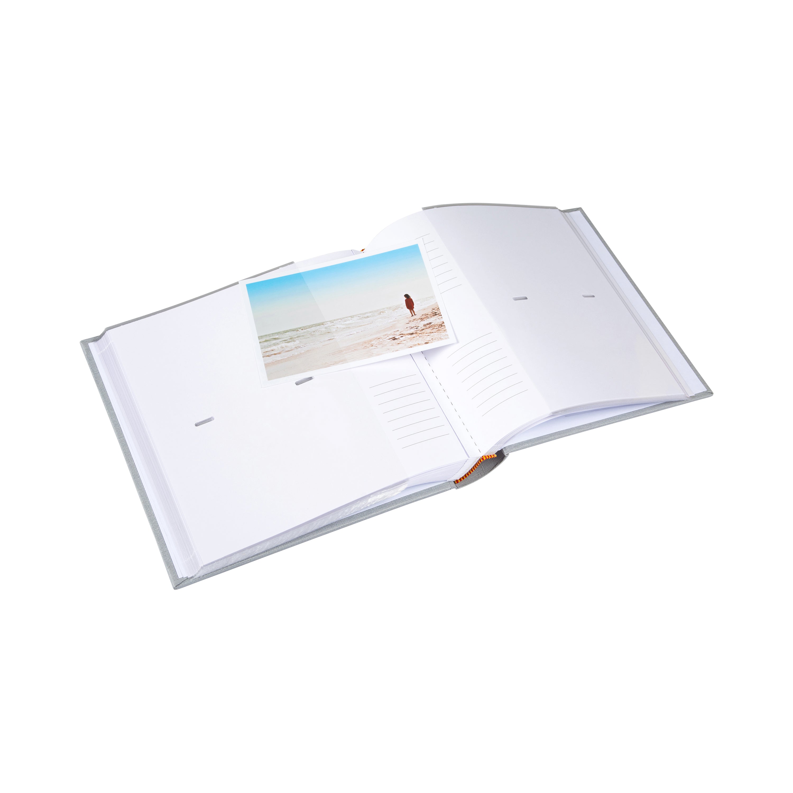 Das Fotoalbum fasst 2 Fotos je Seiten und auf den Innenseiten befinden sich Linien zur Beschriftung und hat weiße Innenseiten.
