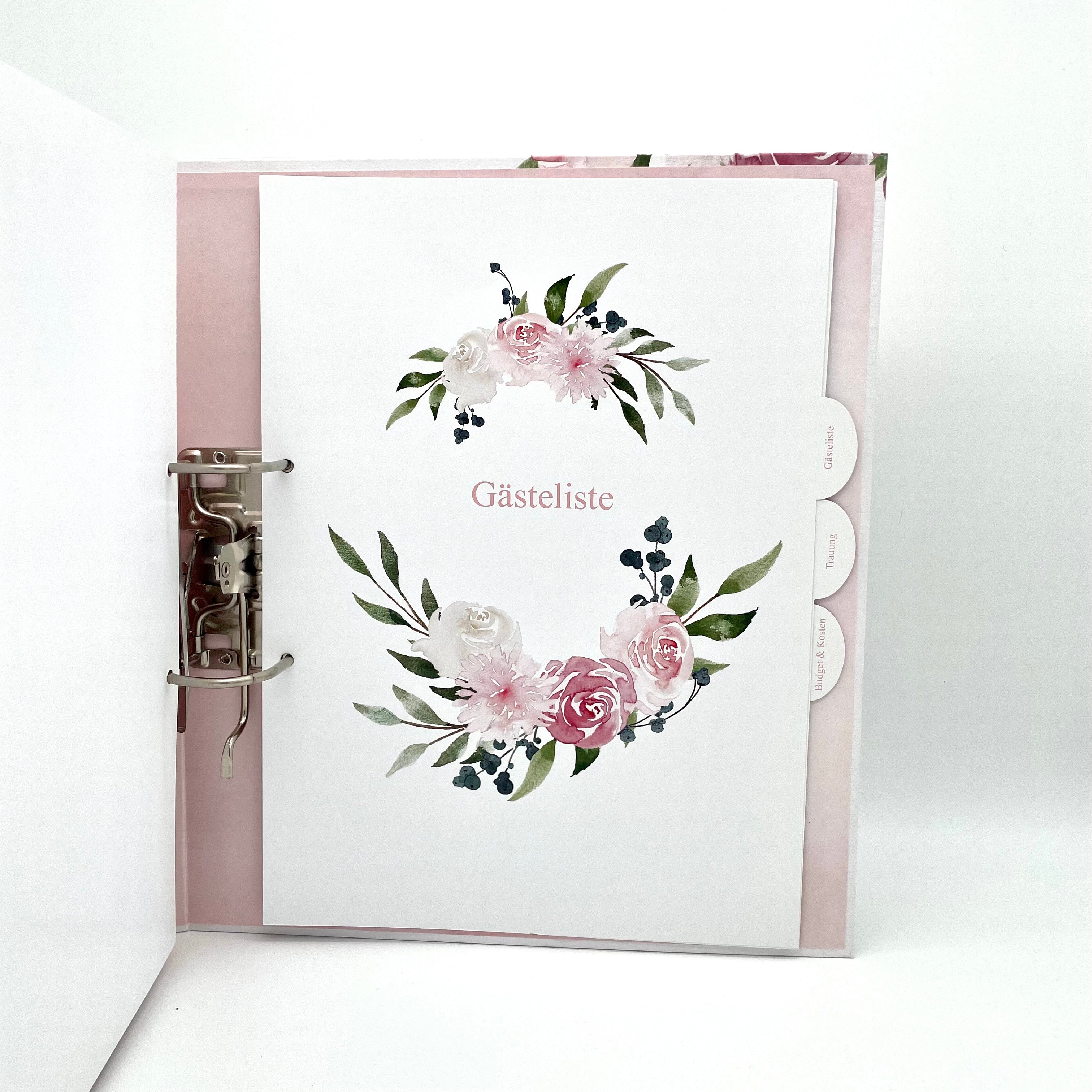Ob Glückwunschkarten, Fotos der Gäste oder besondere Momente der Hochzeitsfeier – all das findet im DIN A4 Sammelordner mit Hochzeits-Design einen besonderen Platz. Jahre später wird er eine wertvolle Erinnerung an diesen unvergesslichen Tag sein.