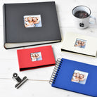 Trendy photo album as a small slip-in album with a different-colored cover bound in structured bookbinding paper and black inner pages made of photo cardboard with glassine to protect your photos. A photo album in which you can stylishly present the photos of your most beautiful moments in life.