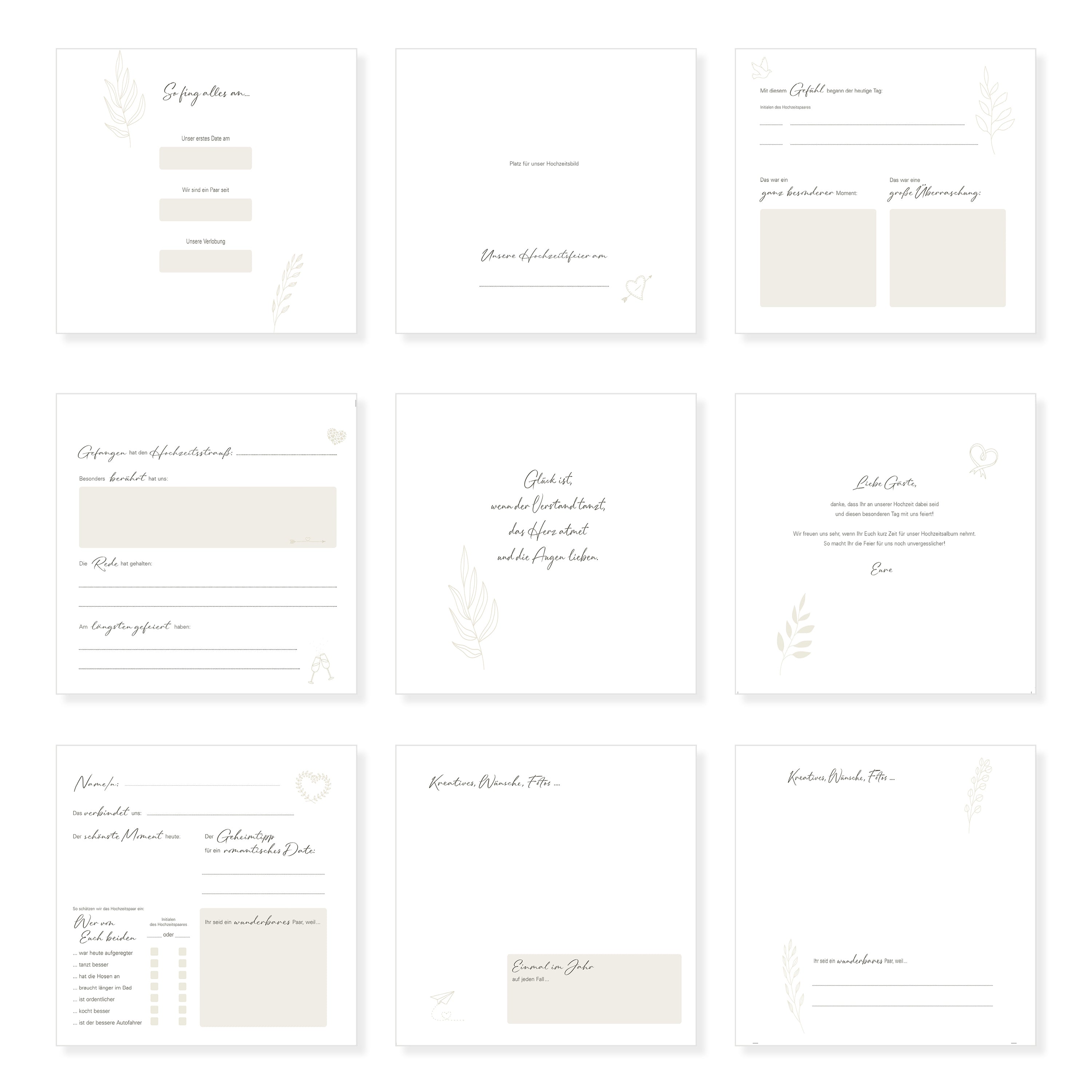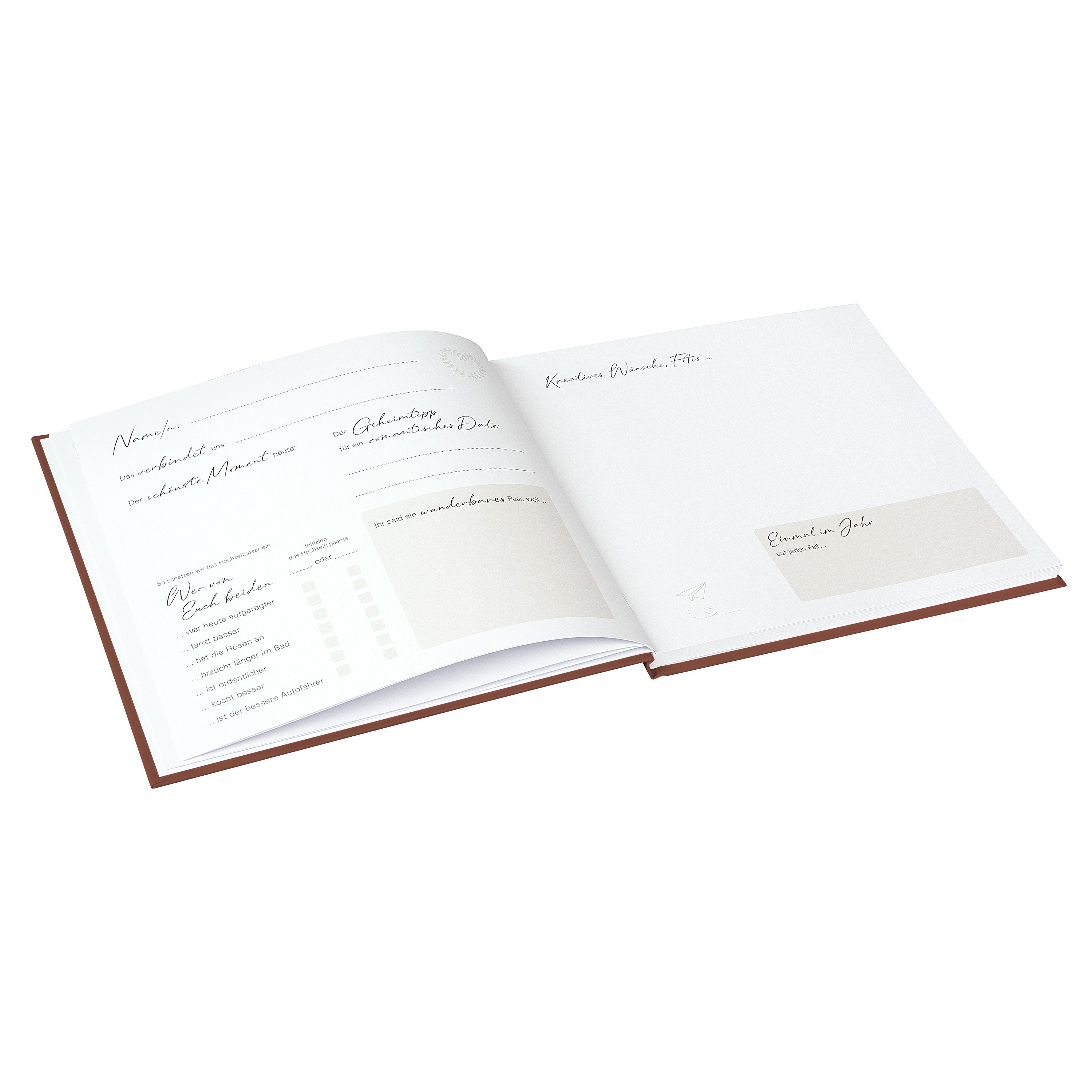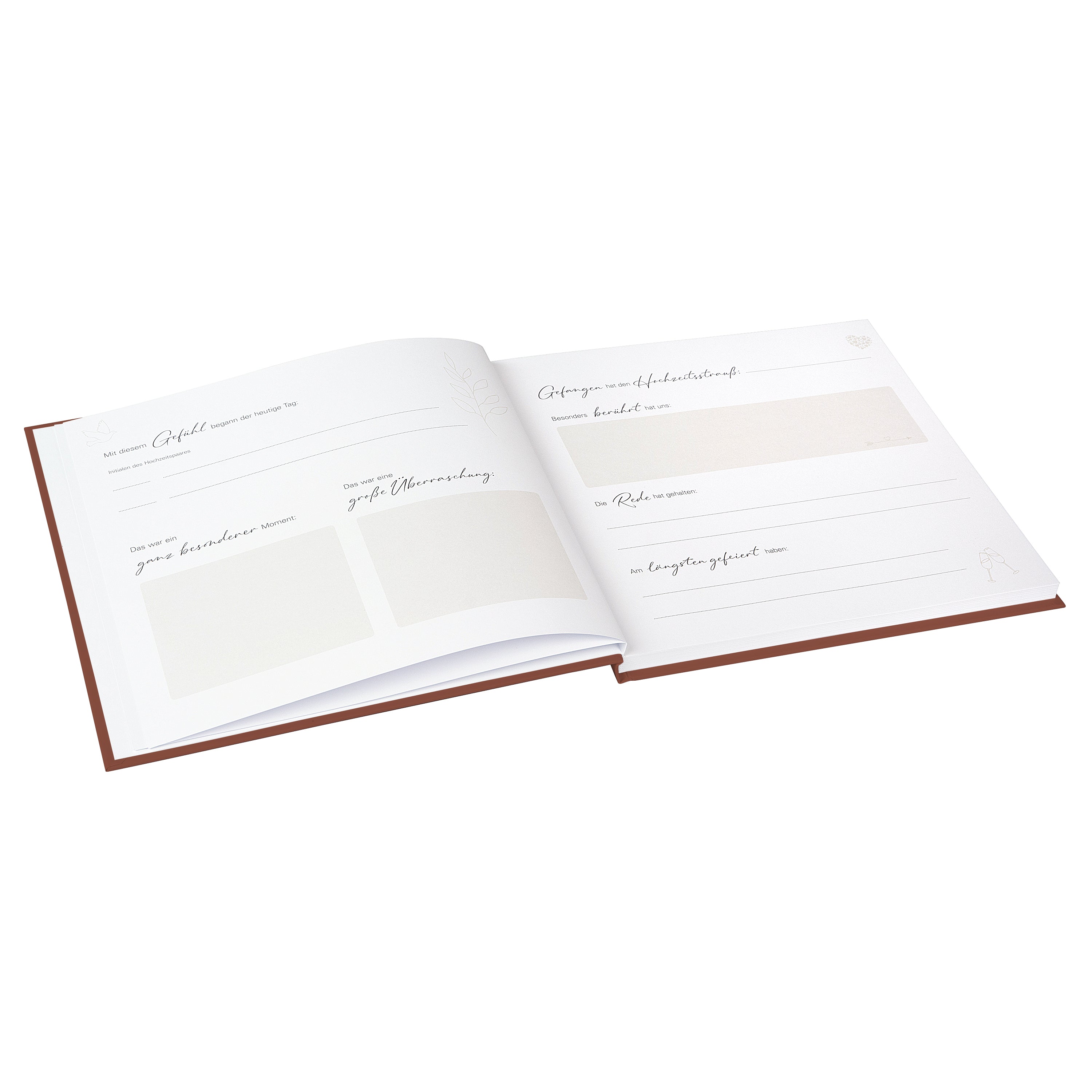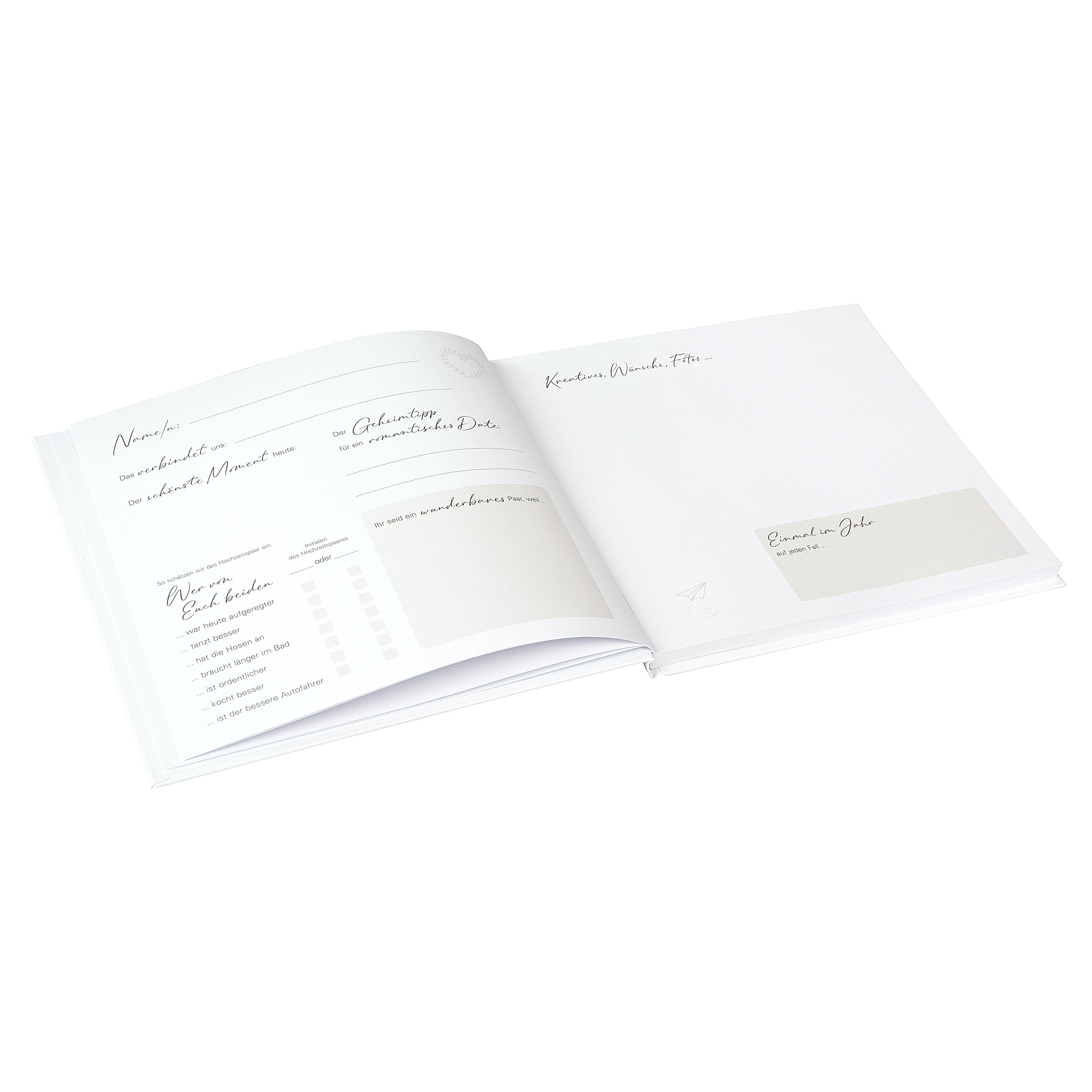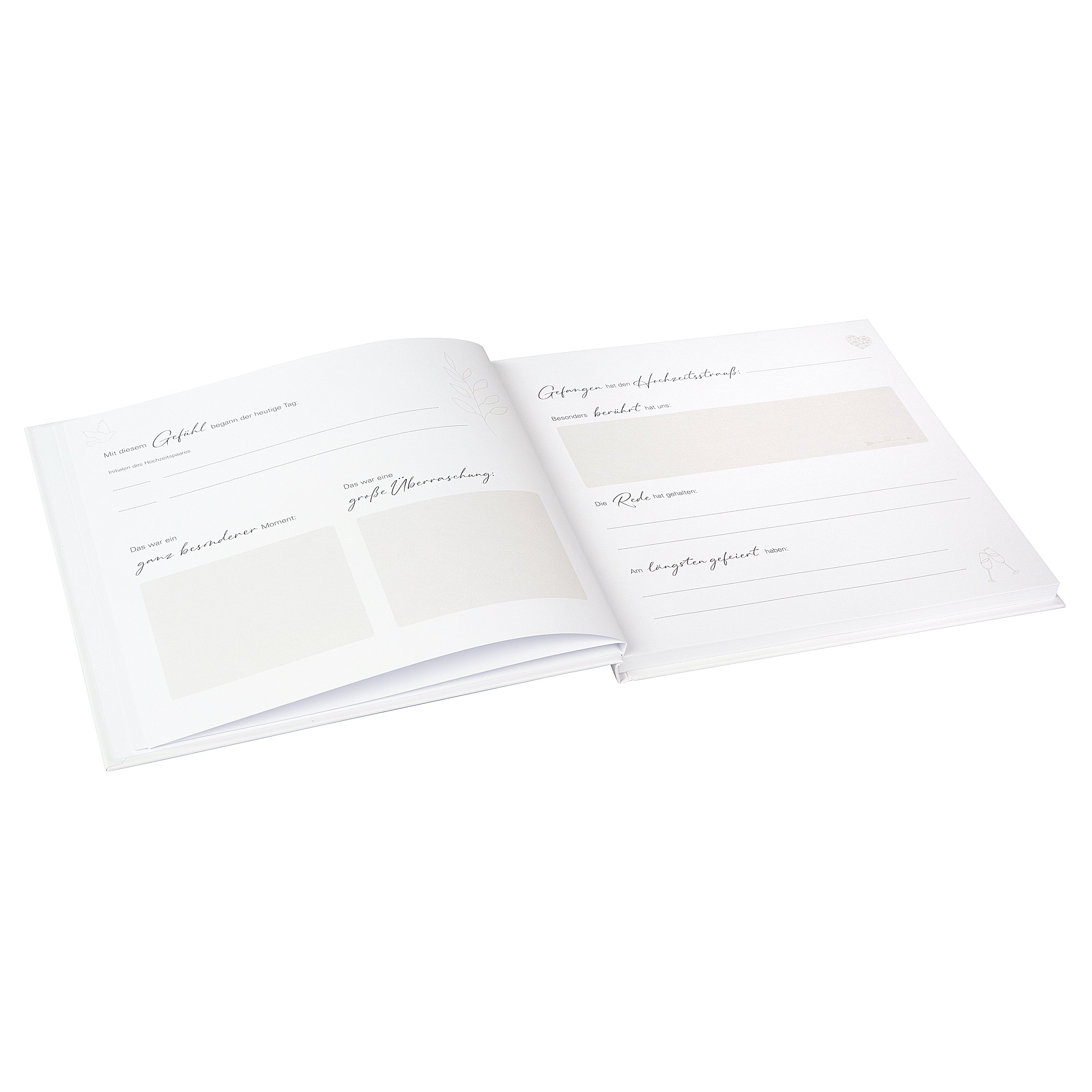 Die zarte, florale Illustration, die sich durch alle Seiten zieht, verleiht dem Gästebuch einen romantischen, verspielten Charakter. Drei abwechslungsreiche Doppelseiten-Designs sorgen dafür, dass sich jeder Gast – ob eng verbunden oder flüchtig bekannt – mit Freude verewigt. Dank des durchdachten Aufbaus steht über 50 Gästen oder Paaren jeweils eine eigene Doppelseite zur Verfügung.